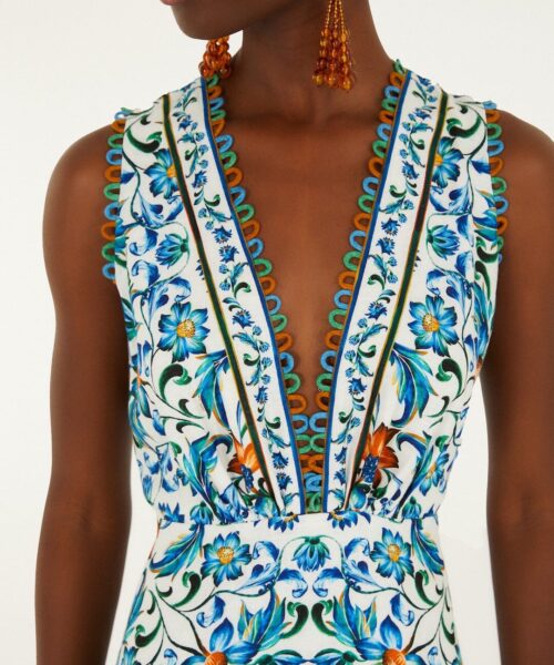 FARM RIO ROYAL SEA MULTICOLOR SLEVELESS MAXI DRESS