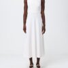 Aυτό το μίντι φόρεμα τραβάει τα βλέμματα με την διακριτική του κομψότητα. Η ρευστότητα του ανακυκλωμένου σατέν κρεπ χαϊδεύει τη σιλουέτα, τονιζόμενη από μια λεπτή ζώνη στη μέση, ενώ το μακρύ μίντι κόψιμο προσδίδει μια εκλεπτυσμένη και διαχρονική γοητεία. Ένα ευέλικτο κομμάτι, ιδανικό για ένα κοκτέιλ πάρτι ή ένα ρομαντικό δείπνο, ικανό να ενισχύσει τη θηλυκότητα