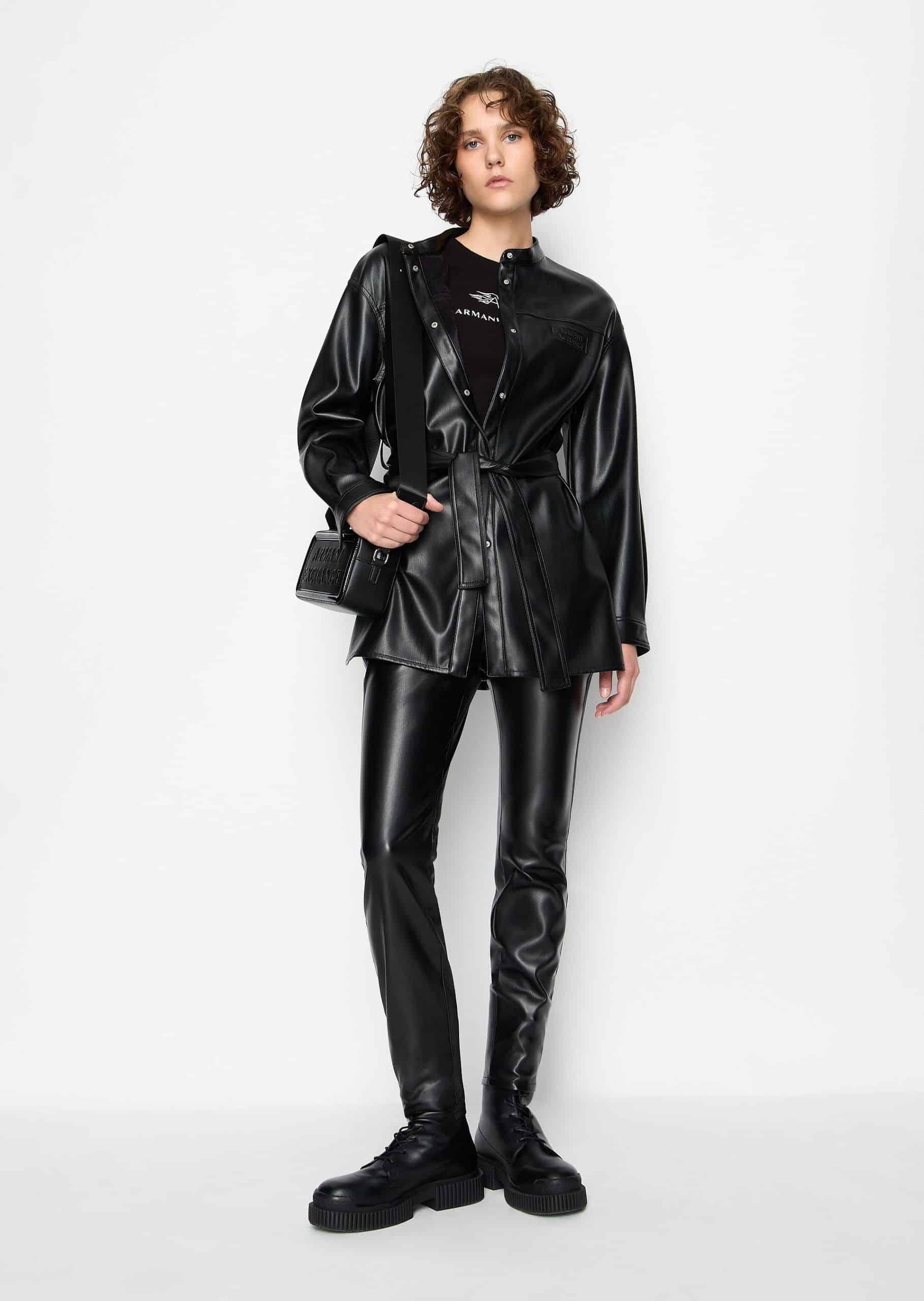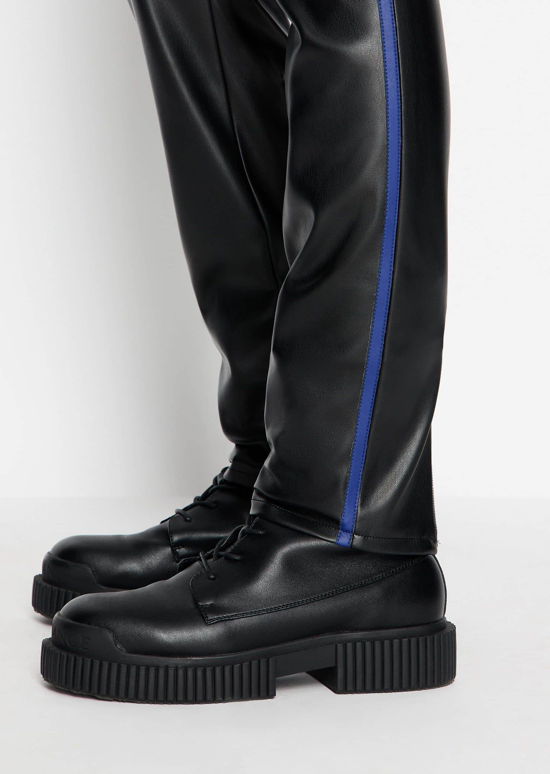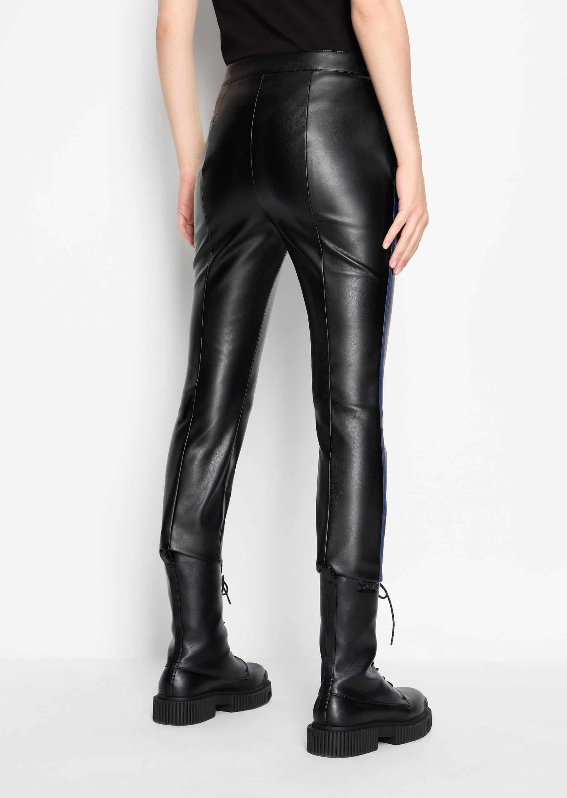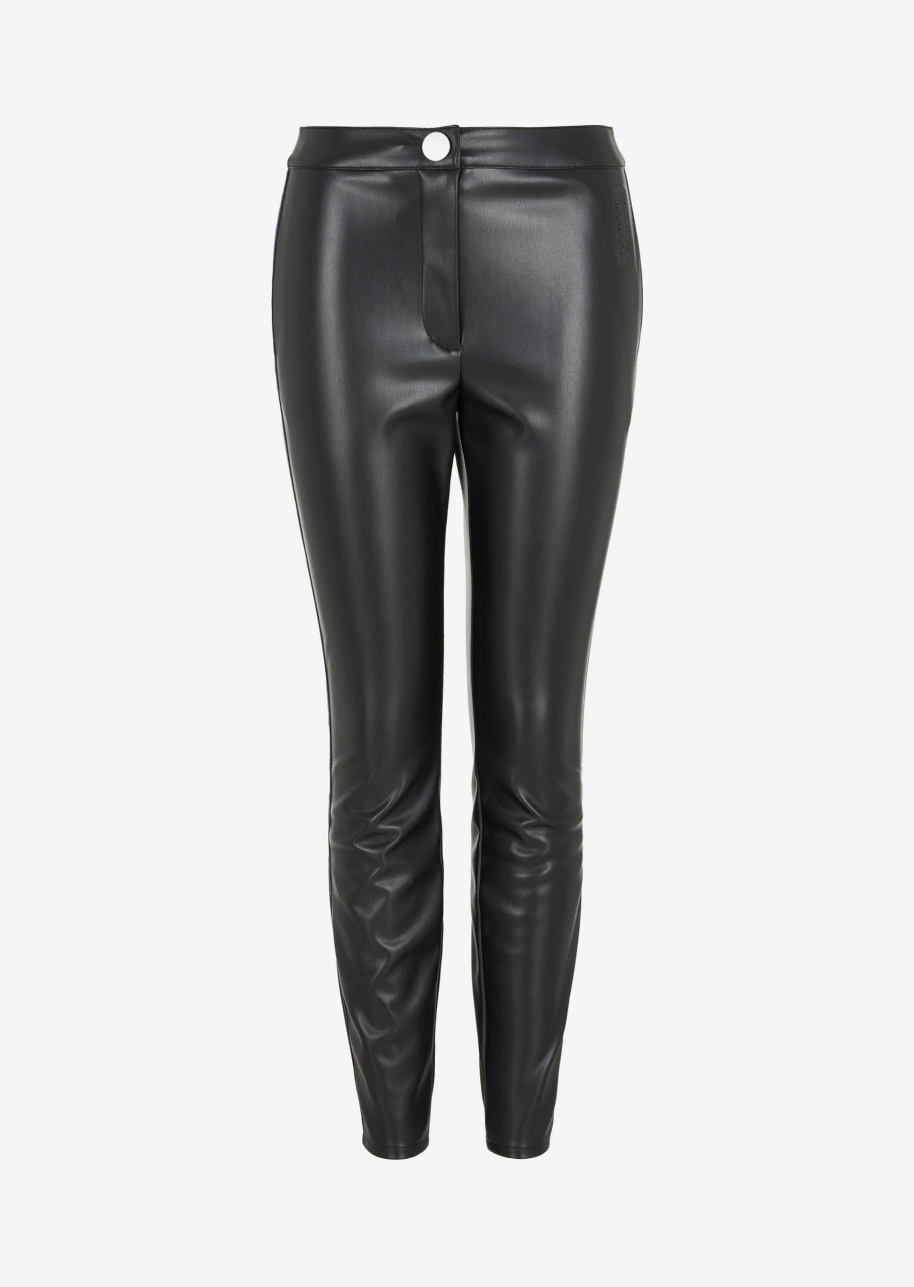 Παντελόνι από τεχνητό δέρμα με μεταλλικές λεπτομέρειες και στενό πόδι.