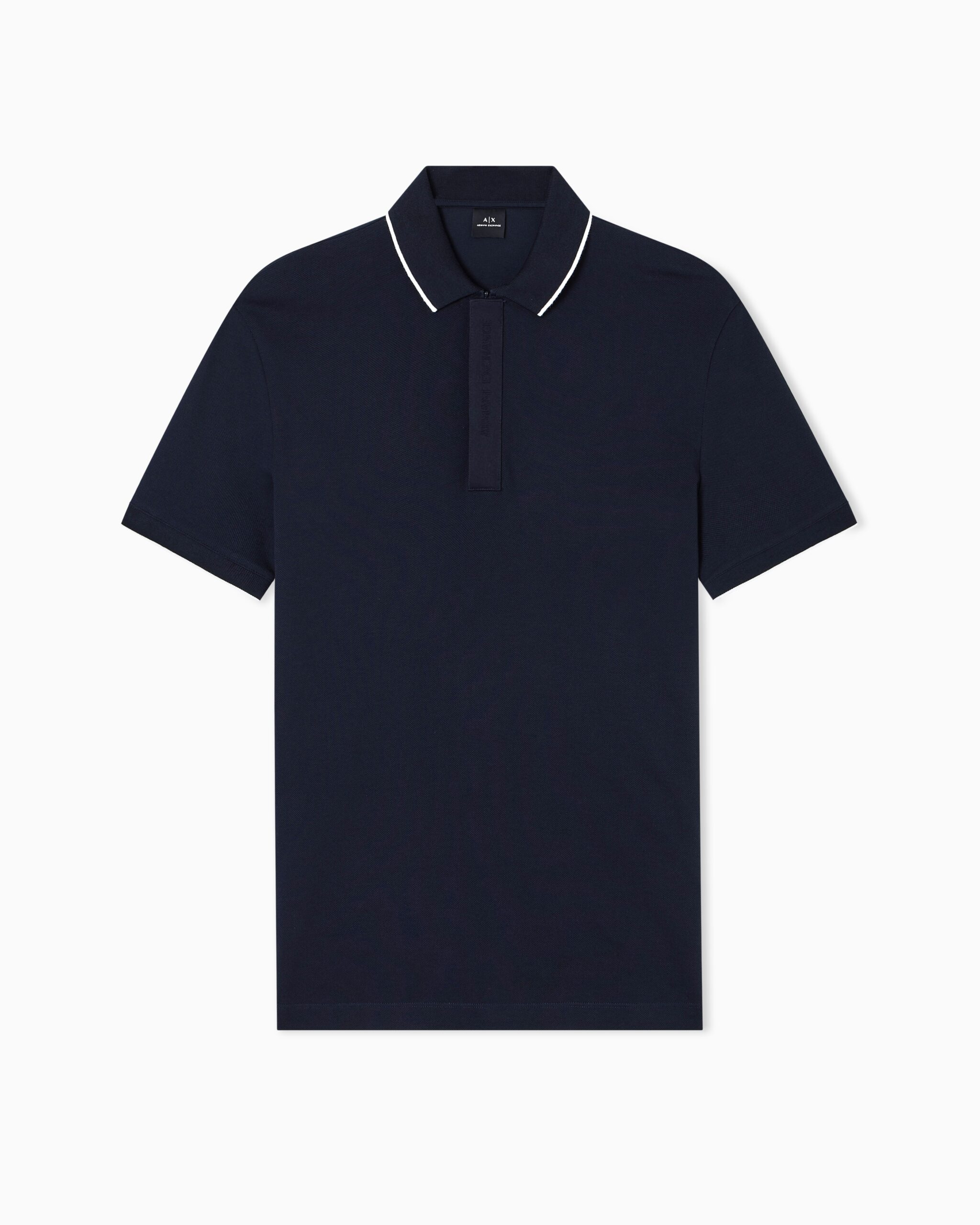 Πόλο στενής εφαρμογής από εμβληματικό πικέ βαμβάκι, το νέο σας αγαπημένο για μια κομψή και μοντέρνα εμφάνιση. Αυτό το πόλο ξεχωρίζει για την άψογη εφαρμογή του που αναδεικνύει τη σιλουέτα και για τη λεπτομέρεια με το ριγέ που κάνει αντίθεση στο γιακά, μια γραφική πινελιά που κάνει τη διαφορά. Η μπροστινή πατιλέτα με φερμουάρ, κατασκευασμένη από τεχνικό υλικό που κάνει αντίθεση, προσθέτει μια μοντέρνα και εκλεπτυσμένη ατμόσφαιρα.