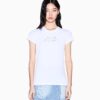 Μια αίσθηση άνεσης και στυλ συνδυάζονται σε αυτό το στενό t-shirt. Κατασκευασμένο από απαλό βαμβακερό ζέρσεϊ, αγκαλιάζει τη σιλουέτα με αβίαστη κομψότητα. Ένα ευέλικτο κομμάτι, ιδανικό για να φορεθεί μόνο του για μια μινιμαλιστική εμφάνιση ή σε συνδυασμό με σακάκια και μπουφάν για μια πιο εκλεπτυσμένη πινελιά. Απλότητα που δεν φεύγει ποτέ από τη μόδα.