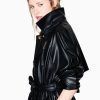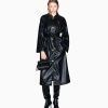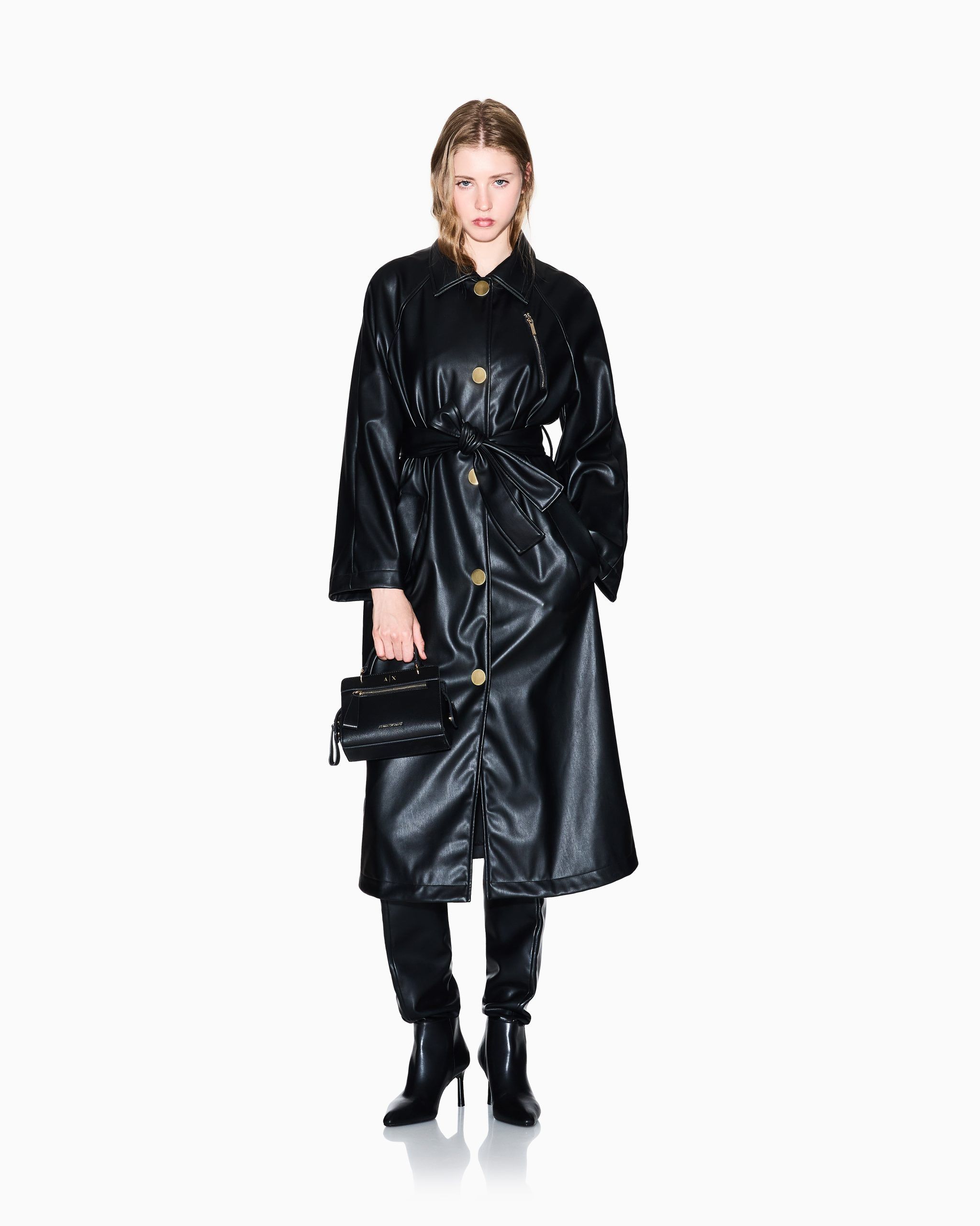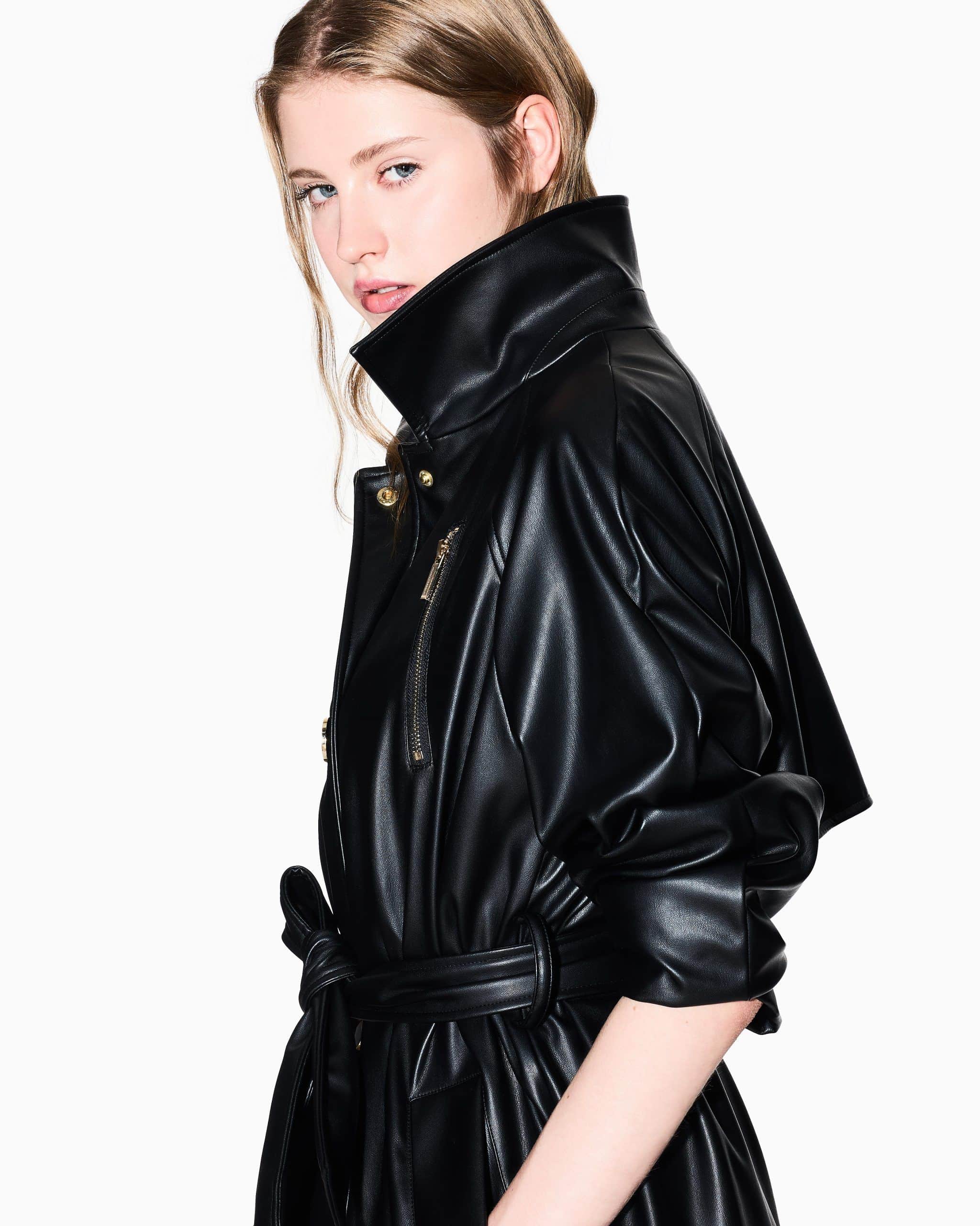 Καμπαρντίνα κατασκευασμένη από υλικό με επίστρωση, προσφέροντας γυαλιστερό φινίρισμα και απαλή αίσθηση, ιδανική για μια εκλεπτυσμένη και μοντέρνα εμφάνιση. Η κλασική σιλουέτα ανανεώνεται με μια σύγχρονη πινελιά, και η ασορτί ζώνη στη μέση ορίζει τη σιλουέτα, ενισχύοντας την κομψότητα του ενδύματος.