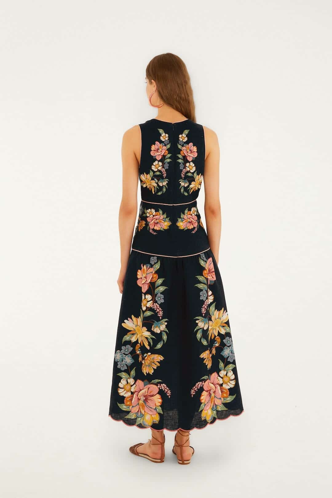 Αγκαλιάστε την κομψότητα με το σκούρο μπλε φόρεμα Maira Floral Euroflax™ Premium Linen Midi από την FARM Rio. Η πλούσια βάση του σε λουλακί χρώμα ανθίζει με ζωηρά, χειροποίητα φλοράλ σχέδια που χορεύουν πάνω στο ρέον λινό ύφασμα. Η κολακευτική λαιμόκοψη V πλαισιώνει απαλά την κλείδα, ενώ η χαλαρή μίντι σιλουέτα προσκαλεί στην άνεση και την κίνηση. Κατασκευασμένο από φυσικό λινό Euroflax™, αυτό το φόρεμα συνδυάζει την αναπνεύσιμη άνεση με την παιχνιδιάρικη κομψότητα, ιδανικό τόσο για ηλιόλουστες μέρες όσο και για casual βράδια.