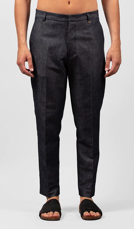 Pantalone in cotone/lino effetto denim