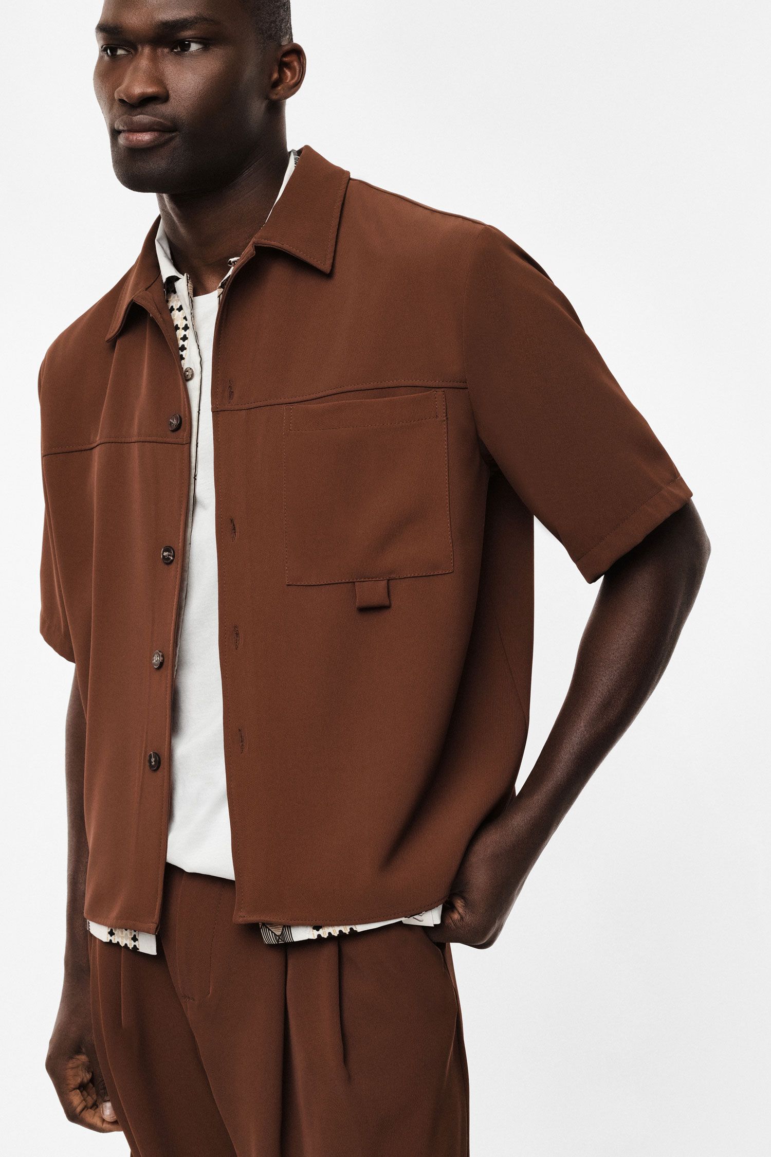 Κοντό μανίκι με κανονική εφαρμογή και καθαρή σιλουέτα, με τσέπη στο στήθος για επιπλέον πρακτικότητα. Ο σύγχρονος σχεδιασμός και η λειτουργική λεπτομέρεια στο μπροστινό μέρος το καθιστούν ιδανικό για καθημερινή χρήση σε αστικό περιβάλλον, παρέχοντας μια ευέλικτη βάση για τη δημιουργία πρωτότυπων outfits