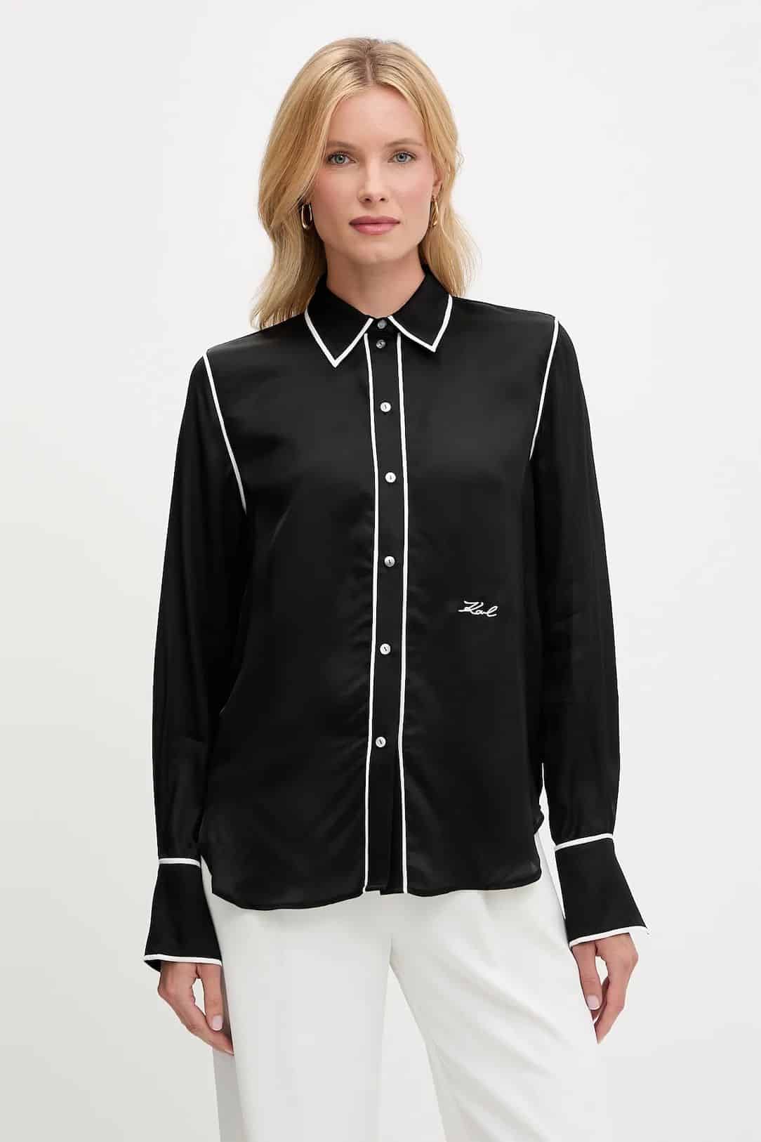KARL LAGERFELD BW CONTRAST PIPING BLOUSE