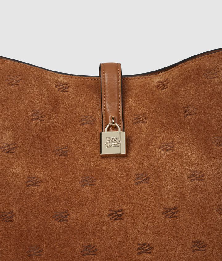 Συνδυάζοντας το αβίαστο στυλ και την πρακτικότητα, αυτή η απαλή σουέτ τσάντα hobo αναβαθμίζει κάθε εμφάνιση. Διαθέτει κλείσιμο με γλωσσίδα στο πάνω μέρος με κομψό λουκέτο και δένει με ένα ανάγλυφο, ολοκληρωμένο σχέδιο Karl Autograph.