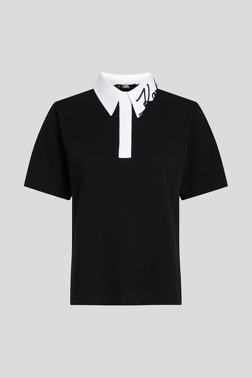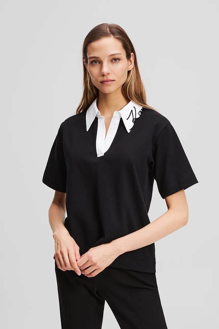 Μπλουζάκι από τη συλλογή Karl Lagerfeld. Μοντέλο από βαμβακερό, αέρινο πλεκτό ύφασμα.