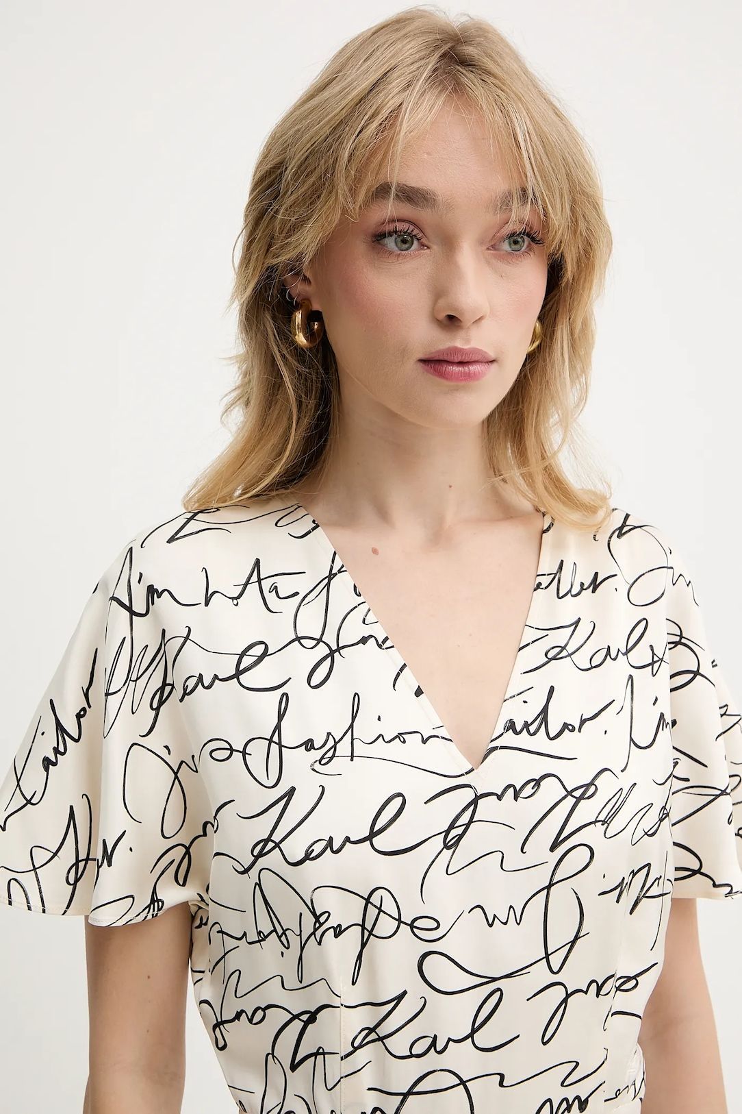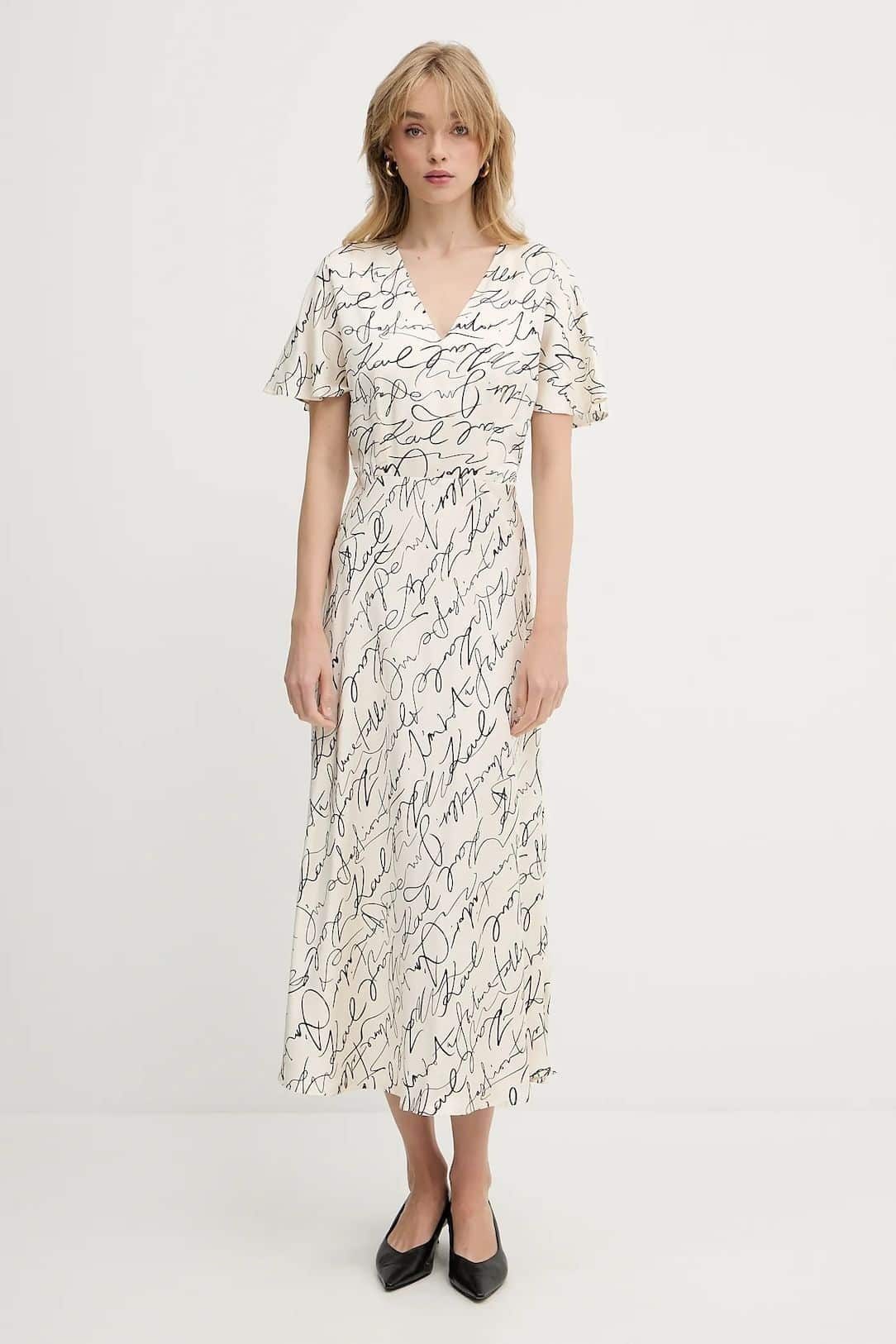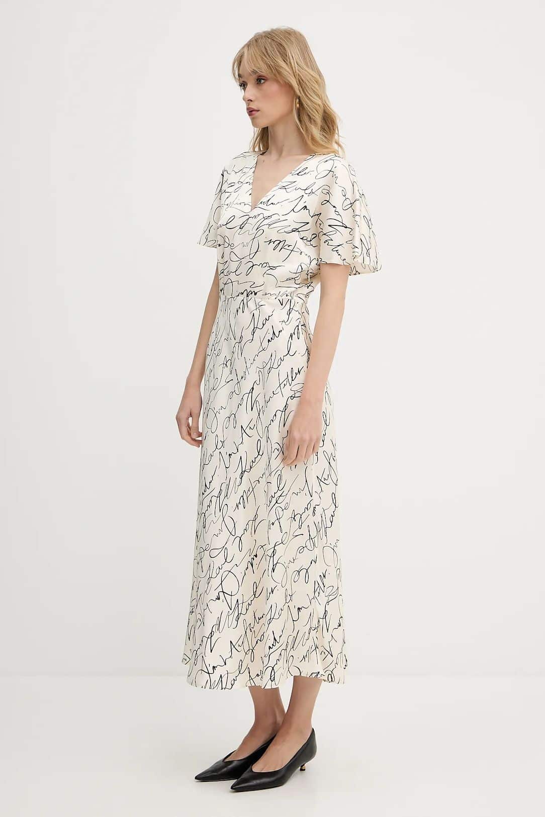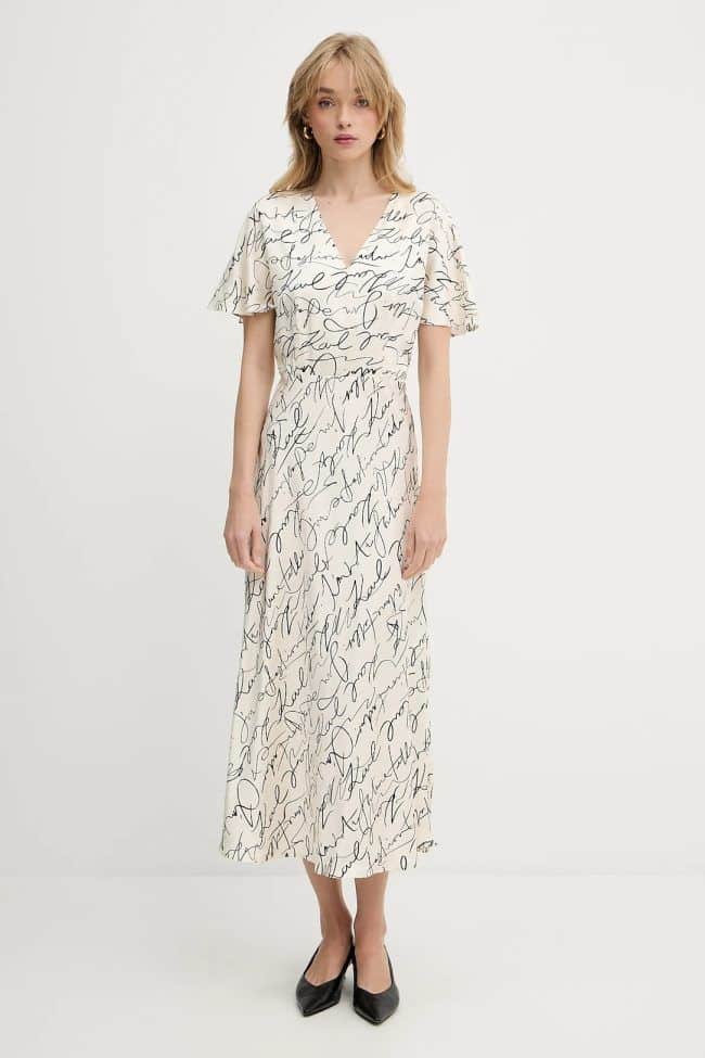 Ελαφρύ φόρεμα από τη συλλογή Karl Lagerfeld κατασκευασμένο από ύφασμα με σχέδια.