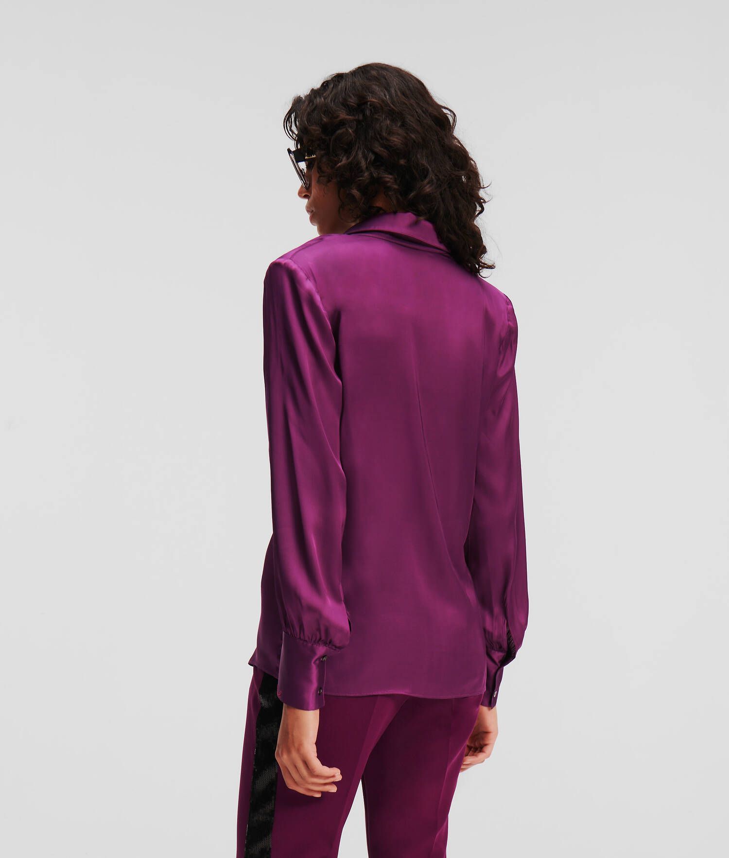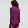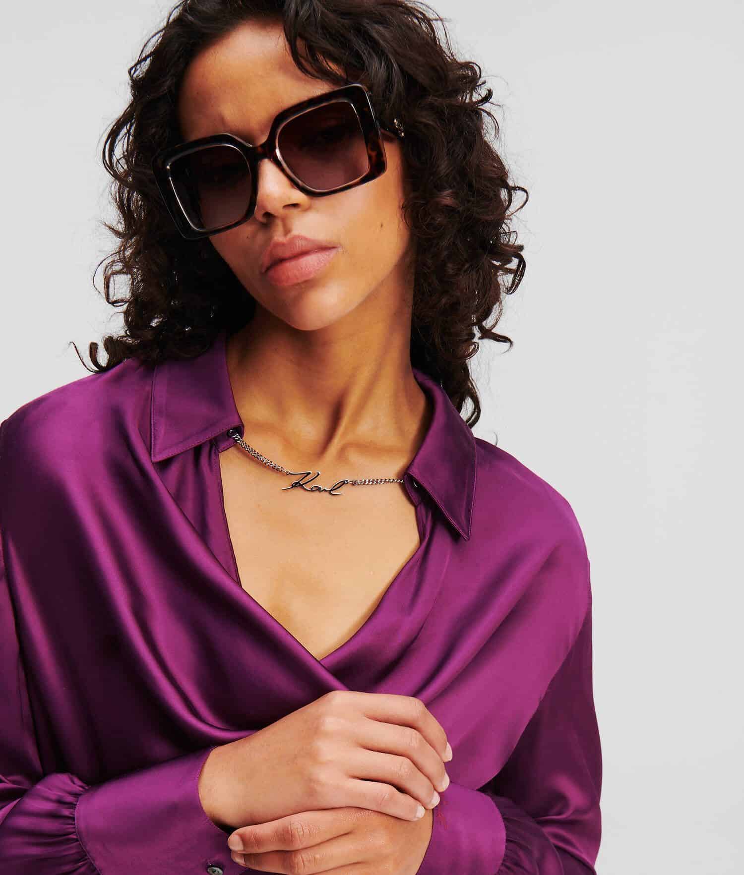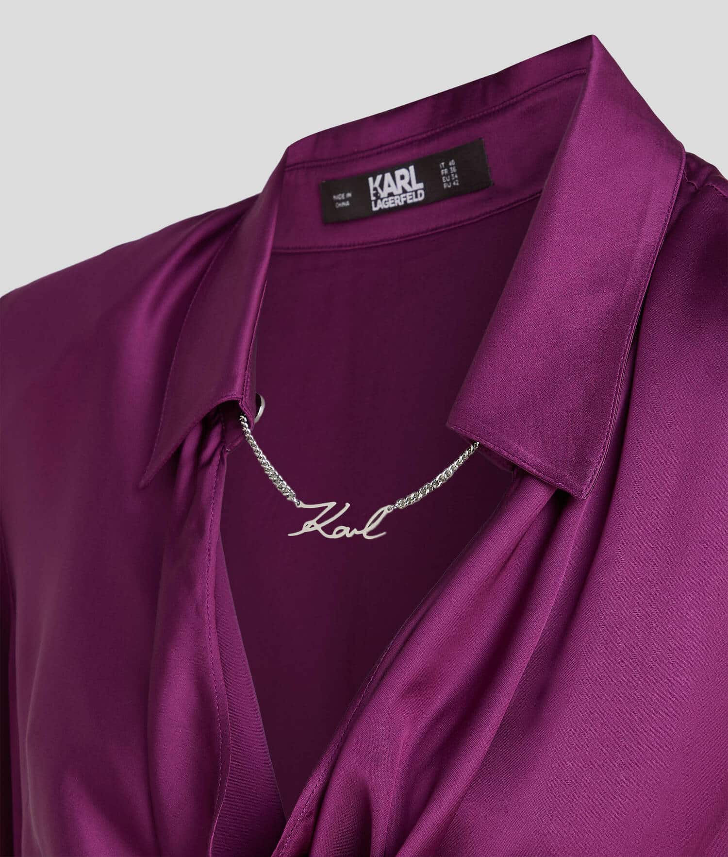 Μια αλυσίδα KARL Signature και η ντραπέ λαιμόκοψη φέρνουν ρομαντικές λεπτομέρειες σε αυτή τη λαμπερή σατέν μπλούζα. Οι δομημένοι ώμοι ολοκληρώνουν το κομψό σχέδιο.