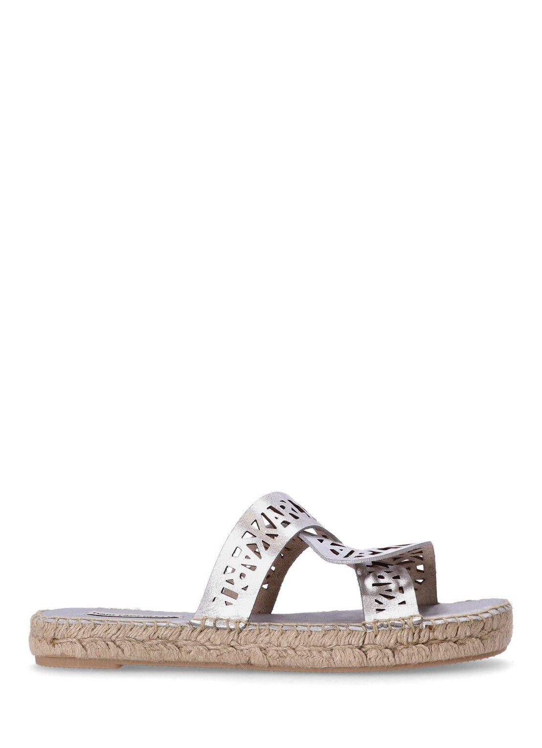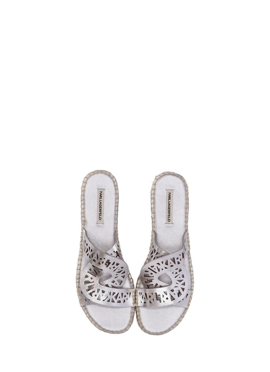 Φλατ σανδάλι με ψάθινη σόλα και περίτεχνο δερμάτινο άνω μέροσ με το λογότυπο KARL
