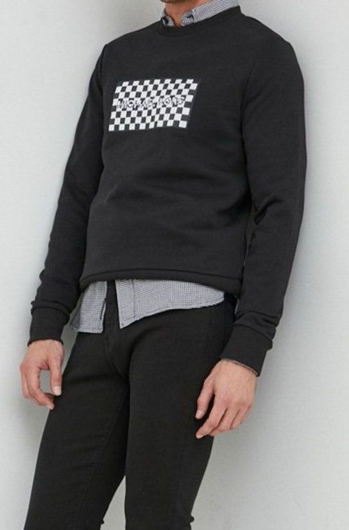 Michael Kors Drip Logo Sweatshirt In Black, A ribbed crew neck with ribbed cuffs on the long sleeves and a ribbed waistband. The large signature Michael Kors logo is printed on the chest in an original black graphic design.