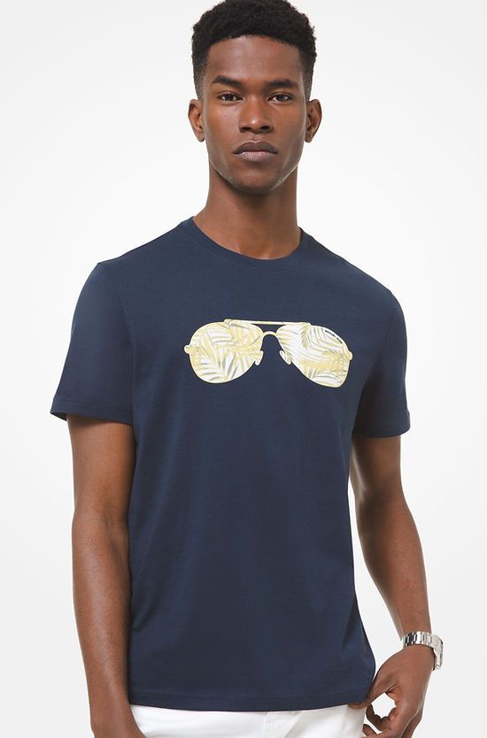 Sunny disposition: the season’s palm leaf print meets our signature aviator motif on this cotton T-shirt. Wear it with joggers and trainers to complete an on-the-go look.