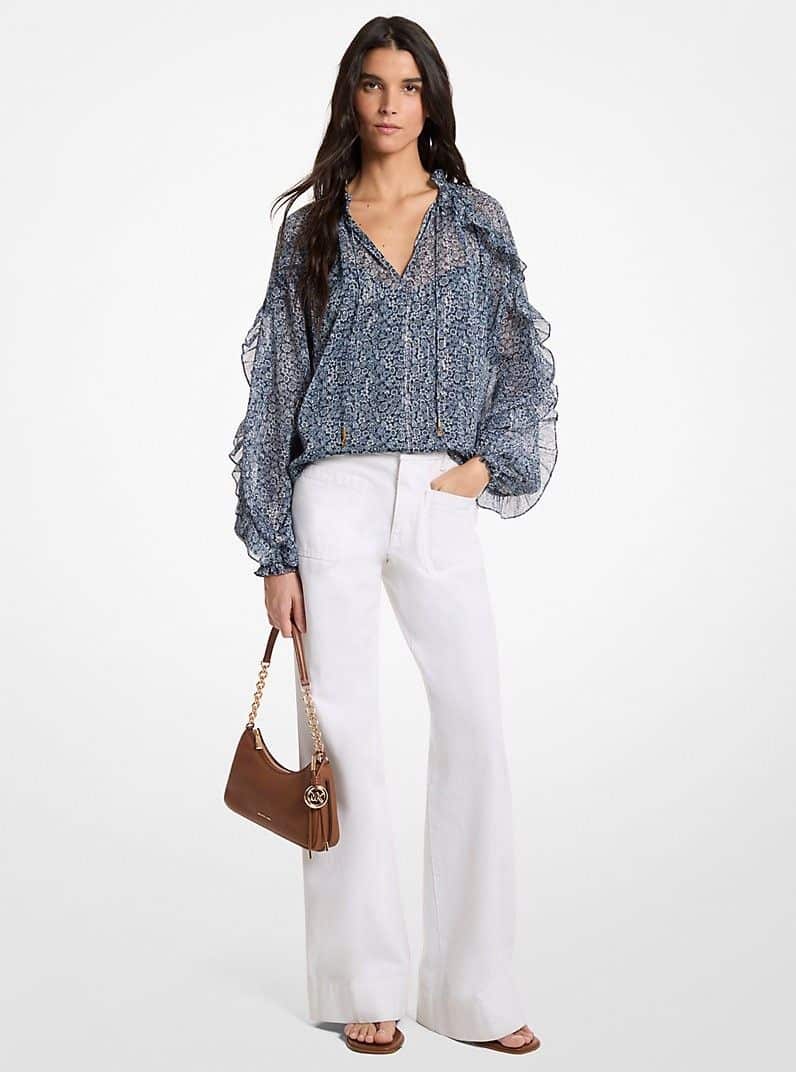 MICHAEL KORS Ruffled Metallic Floral Georgette Blouse