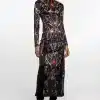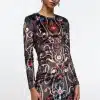 Το Dusk Bodycon Dress ξεχωρίζει με το εντυπωσιακό του print σε έντονες αποχρώσεις και σχέδια εμπνευσμένα από την folk art. Είναι φτιαγμένο από απαλό, ανάγλυφο ύφασμα τύπου ice velvet που χαρίζει πολυτέλεια και λάμψη.