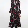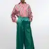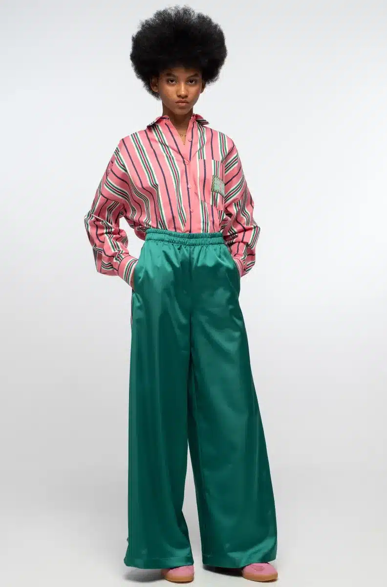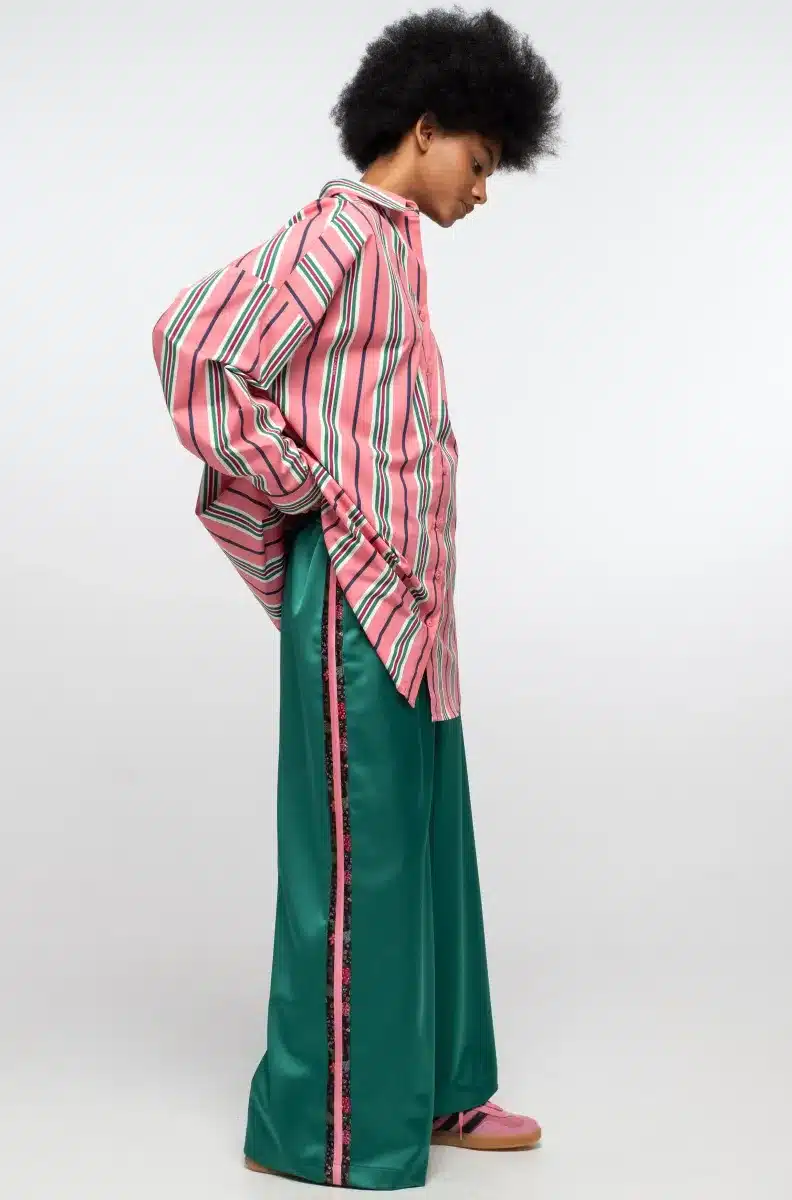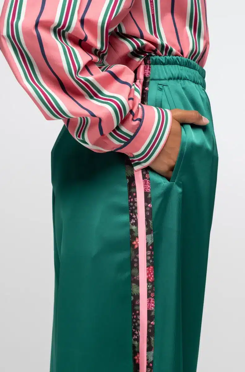 Βαθύ σατέν παντελόνι με τυπωμένη βοτανική ρίγα