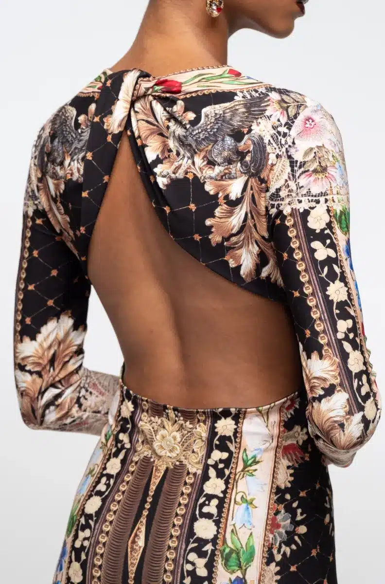 Η ανοιχτή του πλάτη έχει wrap λεπτομέρεια, προσθέτοντας μια εντυπωσιακή νότα στο συνολικό σχέδιο.