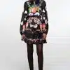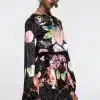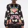 Το φόρεμα Primrose μας δίνει boho ατμόσφαιρα όταν φοριέται χαλαρά και κομψό όταν φοριέται με ζώνη. Αυτό το κοντό φόρεμα σε άνετη γραμμή έχει μακριά μανίκια που τελειώνουν με ελαστικές μανσέτες και φούστα με στρίφωμα με βολάν. Το φερμουάρ στην πλάτη και η στρογγυλή λαιμόκοψη προσθέτουν στην αίσθηση διακριτικότητας, ενώ το συμμετρικό τύπωμα με καθρέφτη σε λαμπερό μαύρο βελούδο του πάγου θυμίζει έναν μαγεμένο κήπο υπό το φως του φεγγαριού.