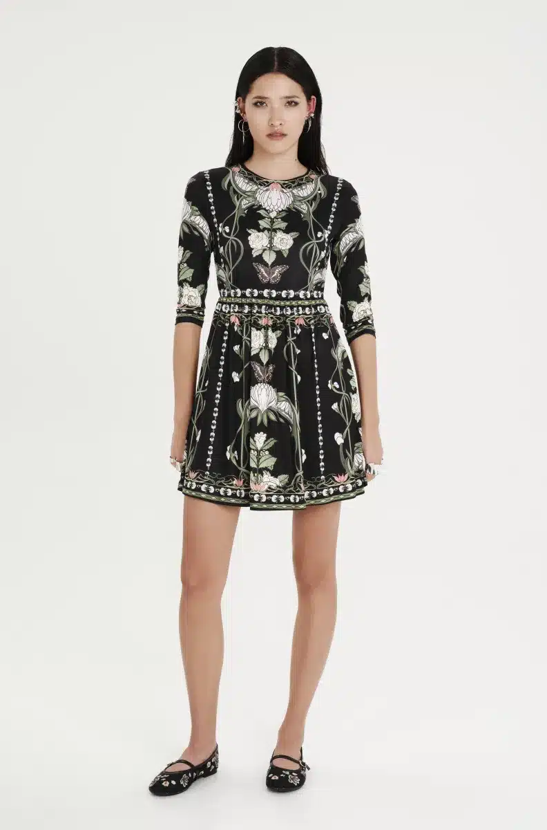 Το Wildflowers Short Dress συνδυάζει δυναμισμό και ρομαντική διάθεση. Είναι ένα κοντό φόρεμα, φτιαγμένο από μαλακό, ελαστικό jersey ύφασμα, ενώ το placement print του έχει floral σχέδια, εμπνευσμένα από την Art Nouveau. Εφαρμόζει στη μέση και ανοίγει σε Α-γραμμή, ενώ τα μανίκια ¾ έχουν πιο στενή εφαρμογή. Φορέστε το σε ανοιξιάτικες εμφανίσεις μέσα στη μέρα αλλά και σε βραδινές στιγμές.