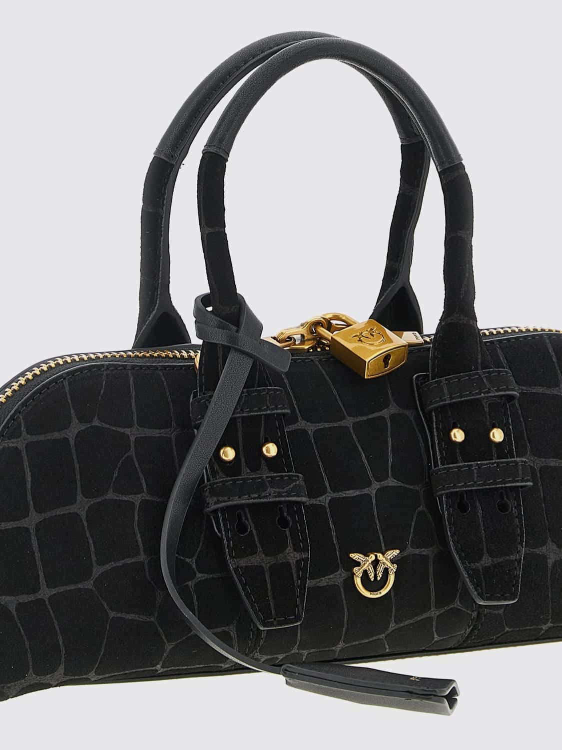 Μικρή τσάντα χειρός Escape Bag μοντέλο bowling, από δέρμα νουμπούκ με print κροκόδειλου. Το ρυθμιζόμενο και αφαιρούμενο δερμάτινο λουρί, καθώς και το διπλό χερούλι, που προσφέρουν τη δυνατότητα μεταφοράς στο χέρι ή στον ώμο, κάνουν την τσάντα εξαιρετικά εύχρηστη και πρακτική. Το μοντέλο έχει μια πρακτική κλειδαριά που ανοίγει και κλείνει με ένα κλειδί που βρίσκεται στο αντίστοιχο charm, ενώ την τελική πινελιά δίνει η μικρή πλακέτα με το λογότυπο Love Birds, που εκφράζει το απαράμιλλο στυλ της μάρκας. Το επάνω κλείσιμο με φερμουάρ αποκαλύπτει ένα εσωτερικό τμήμα με βαμβακερή φόδρα και πλαϊνή τσέπη, που κλείνει και αυτή με φερμουάρ. Ενεργοποιήστε την τσάντα σας PINKO: επαληθεύστε τη γνησιότητα του προϊόντος σας και αποκτήστε πρόσβαση στην εξατομικευμένη εμπειρία πλησιάζοντας το smartphone σας στο κέντημα Love Birds στην πίσω πλευρά της τσάντας!