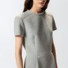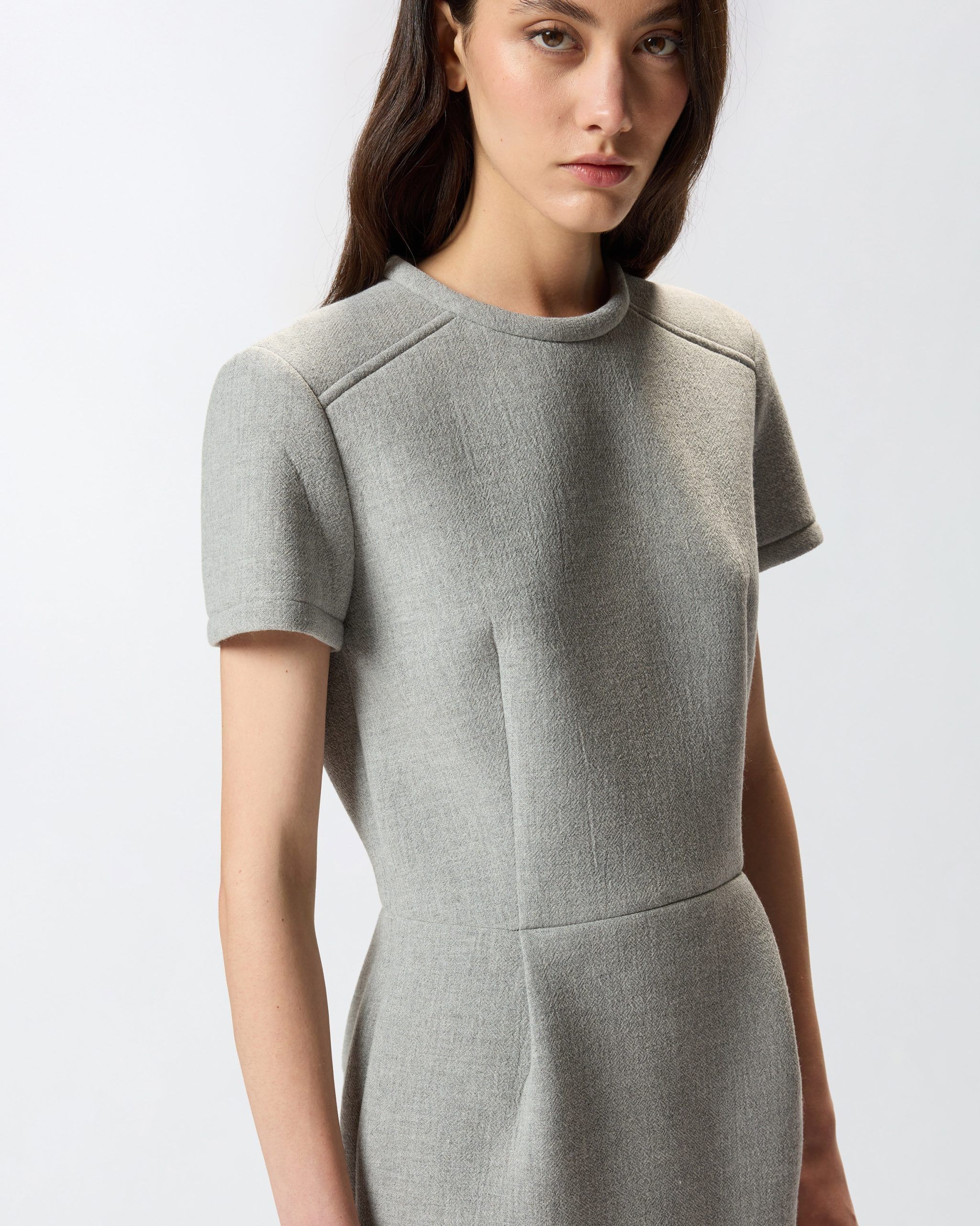 Κοντό φόρεμα με κοντά μανίκια και στενή γραμμή, από πλυμένη μάλλινη γάζα σε στρώσεις και με κλείσιμο πίσω κεντρικά με φερμουάρ διπλού οδηγού. Το ύφασμα προσδίδει μια συμπαγή και μοντέρνα όψη στο ρούχο, ενώ το δομημένο σχέδιο δημιουργεί τέλειες αναλογίες για τα καθημερινά look. Η αφαιρούμενη υφασμάτινη ζώνη που αγκαλιάζει τη μέση, διακοσμημένη με το λογότυπο Love Birds, προσδίδει την τελική πινελιά που εκφράζει το απαράμιλλο στυλ της μάρκας.