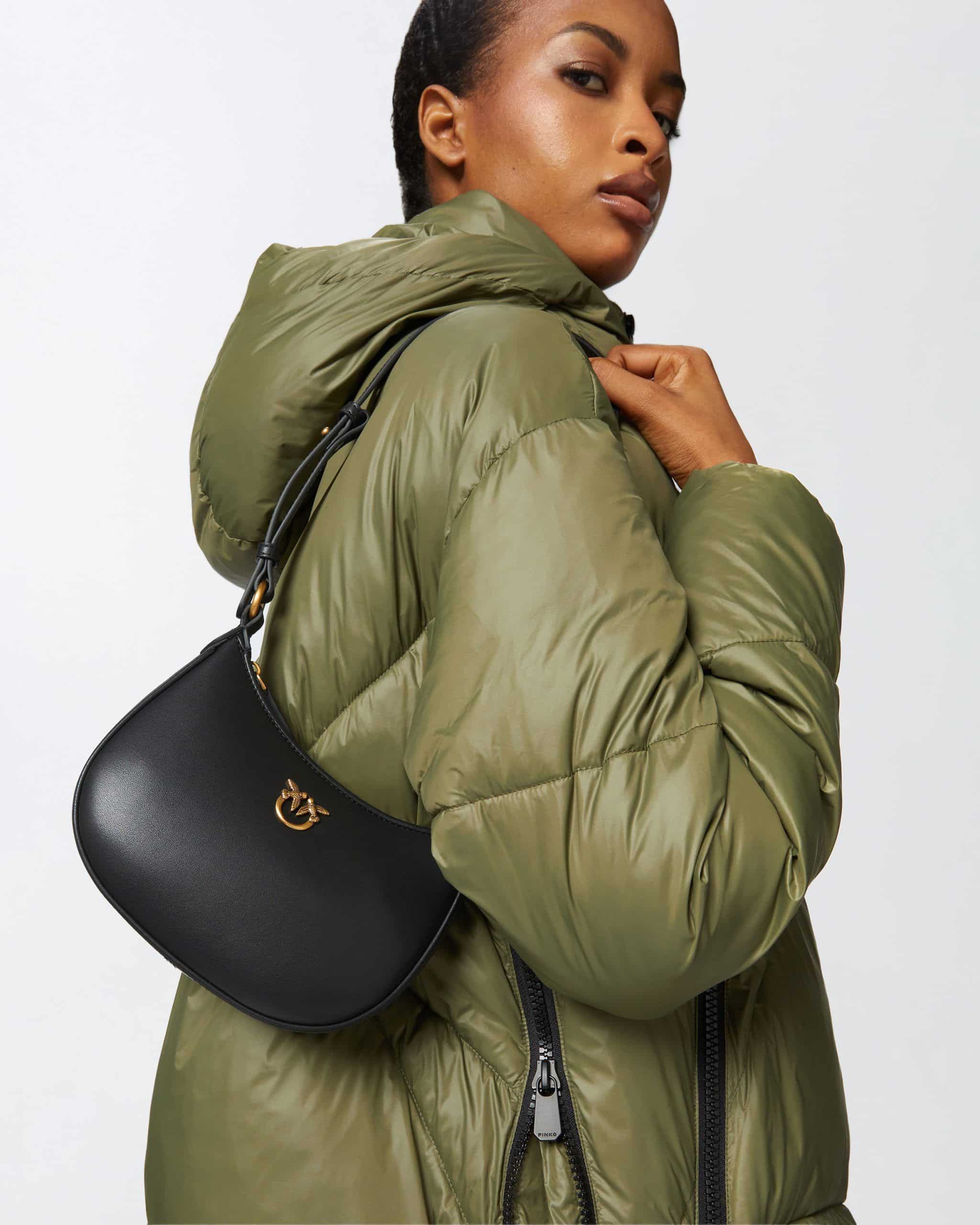 Τσάντα ώμου Baby Half Moon από απαλό, μεταξένιο δέρμα με απαλή υφή και ειδική μεταλλική πλακέτα Love Birds Diamond Cut. Η τσάντα διαθέτει ρυθμιζόμενο δερμάτινο λουράκι για να φοριέται στον ώμο ή στο χέρι, ενώ διαθέτει επένδυση από σουέτ και εσωτερική τσέπη με φερμουάρ. Ενεργοποιήστε την τσάντα PINKO: επαληθεύστε την αυθεντικότητα του προϊόντος σας και αποκτήστε πρόσβαση σε μια εξατομικευμένη εμπειρία σαρώνοντας το κέντημα Love Birds στο πίσω μέρος της τσάντας με το smartphone σας!