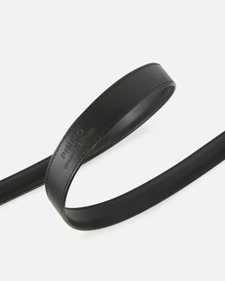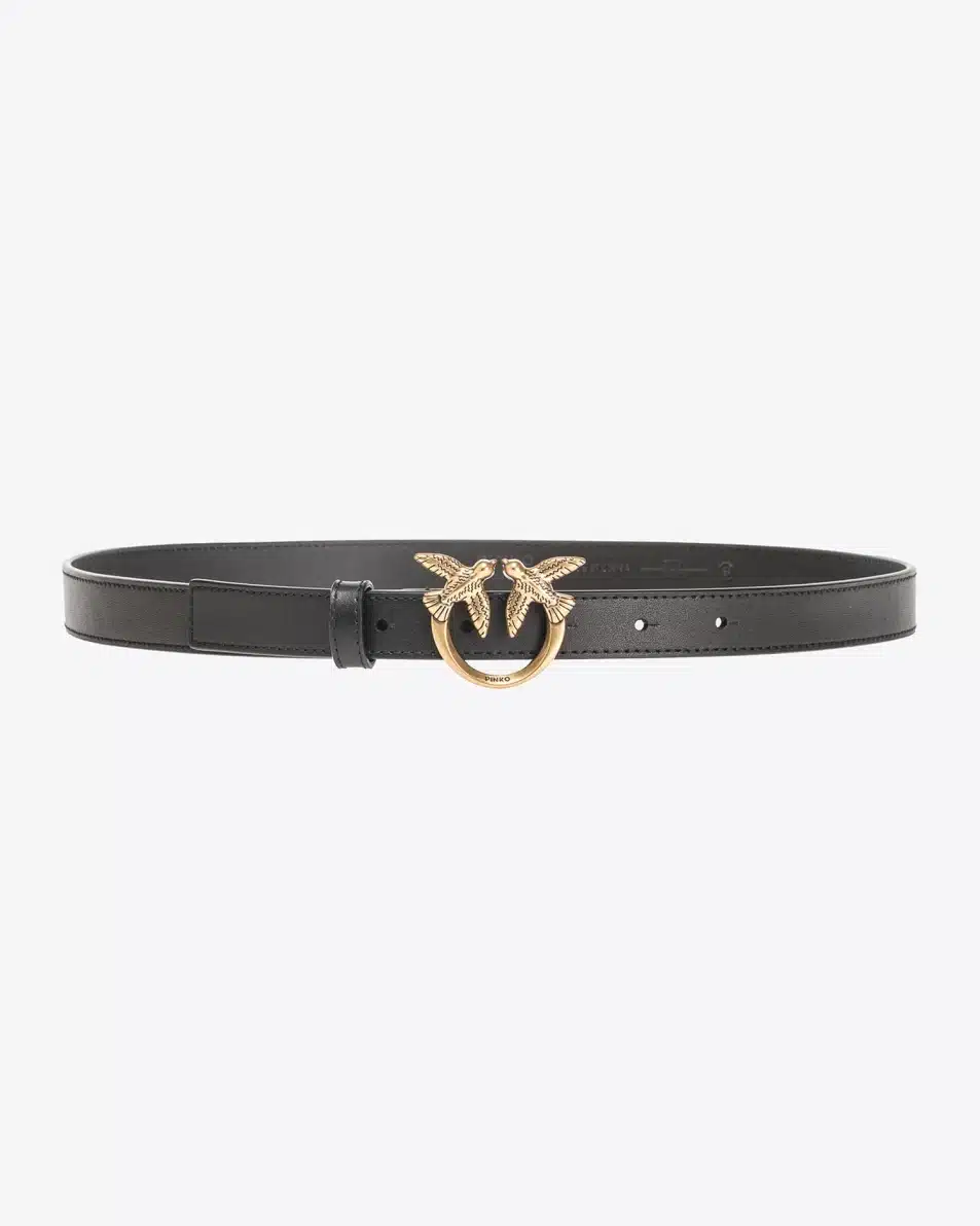 Λεπτή ζώνη από μαλακό δέρμα με μεταξένια υφή, με μεταλλική αγκράφα Love Birds Diamond Cut.
