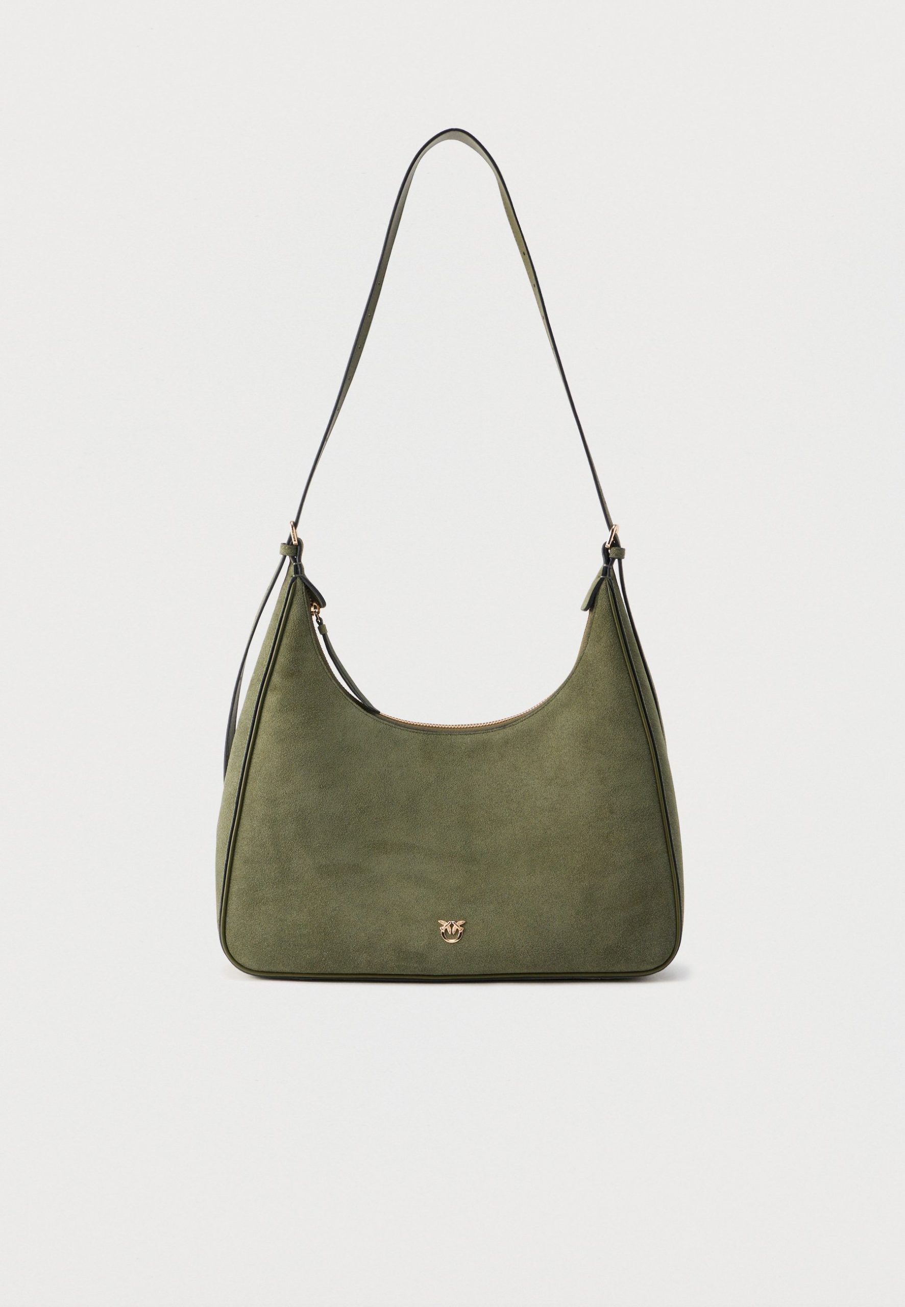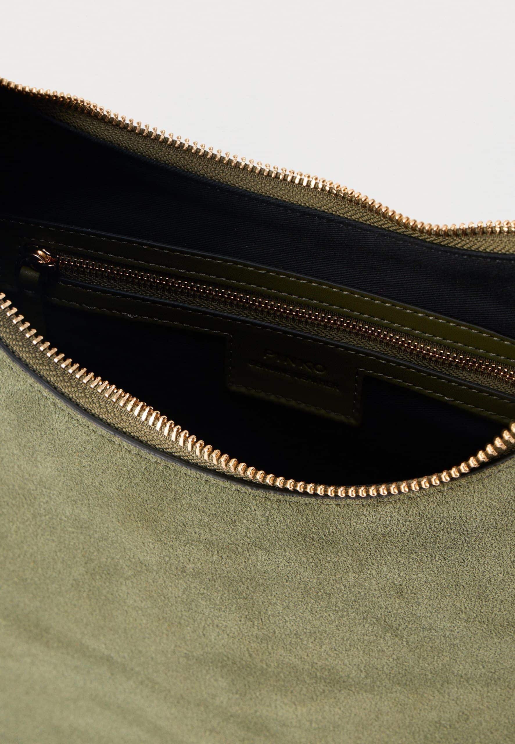 Μεσαίου μεγέθους τσάντα από τη συλλογή Pinko. Με κλείστρο μοντέλο από δέρμα σαμουά.