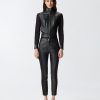 Στενό παντελόνι με λεπτό μπατζάκι και κούμπωμα μπροστά με κρυφό φερμουάρ και ορατό κουμπί. Αυτό το στυλ διαθέτει διπλή κατασκευή από ύφασμα, που διακρίνεται από τον συνδυασμό μαλακού δέρματος στη μέση και στο μπροστινό μέρος και νεοπρενίου στην πλάτη, για ένα άνετο τελικό αποτέλεσμα που ταιριάζει με την εφαρμοστή γραμμή και εκφράζει πλήρως το DNA της PINKO. Φορέστε αυτό το κομμάτι με ένα δερμάτινο μπουφάν για μια ολοκληρωμένη glam-rock εμφάνιση ή συνδυάστε το με ένα oversized μπουφάν για να προσθέσετε μια πινελιά θηλυκότητας σε ένα καθημερινό ντύσιμο.