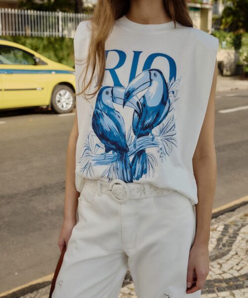 FARM RIO TOUCAN RIO SHOULDER PADS TANK TOP-OFF-WHITE 349809-L0025